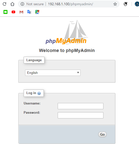 이후 웹브라우저에 "http://라즈베리파이 IP주소/phpmyadmin"로 접속해주고 문제가 없다면 다음과 같은 화면이 출력됩니다.