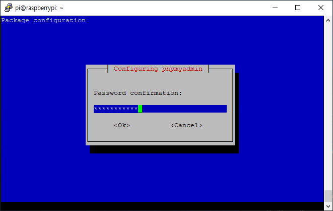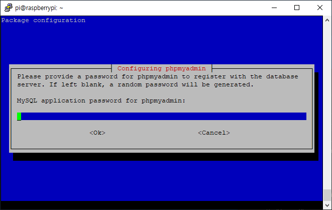phpMyAdmin 관리자 계정의 비밀번호를 입력해줍니다. 바로 "Enter"를 누르면 자동적으로 생성되지만 추후 변경 가능하니 걱정하지 않아도 됩니다. 굳이 나중에 변경할 필요 없이 여기서 입력하는 것을 추천합니다.